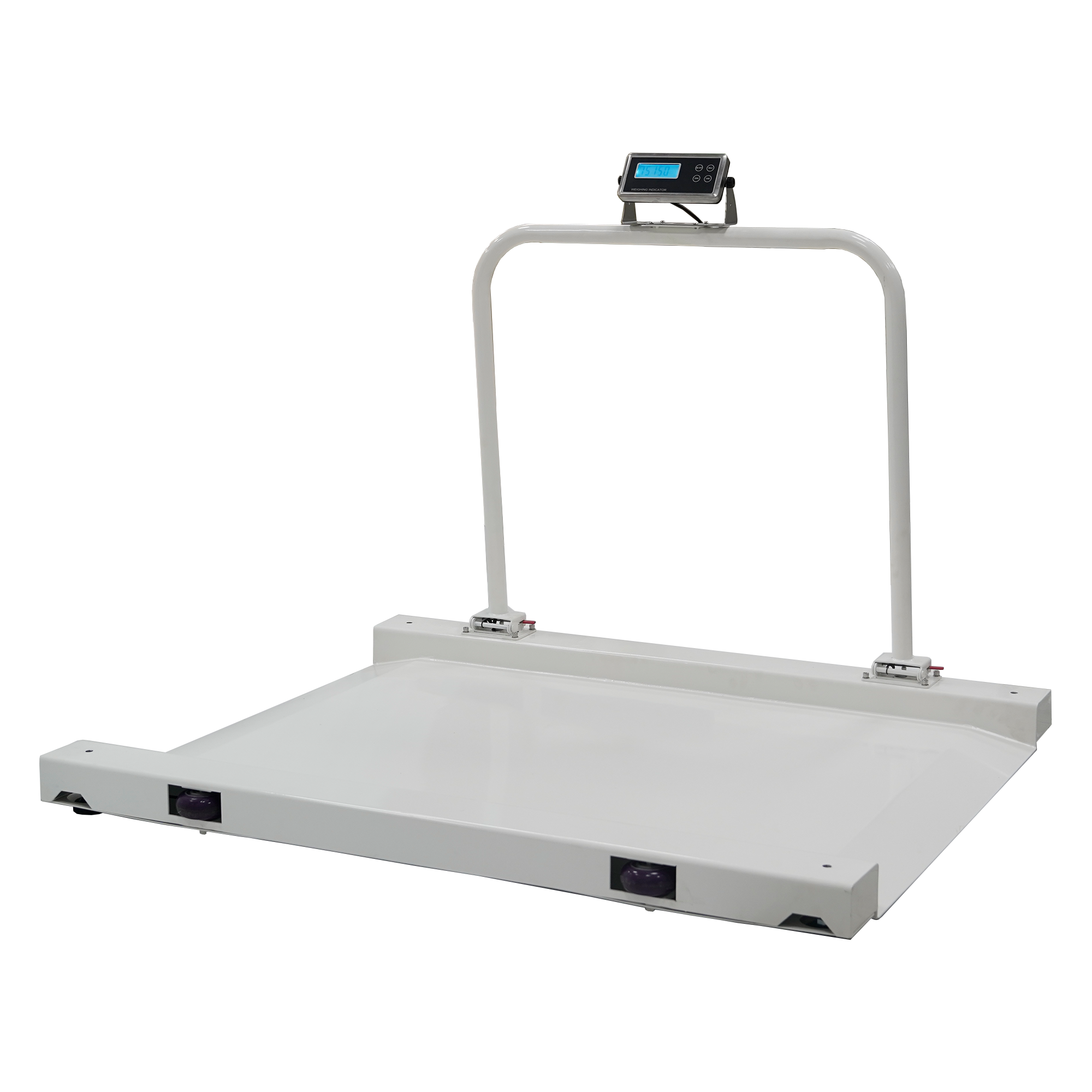 超低台面,自带引坡,方便轮椅称重,可移动滚轮和折叠式把手,便存放和移动。